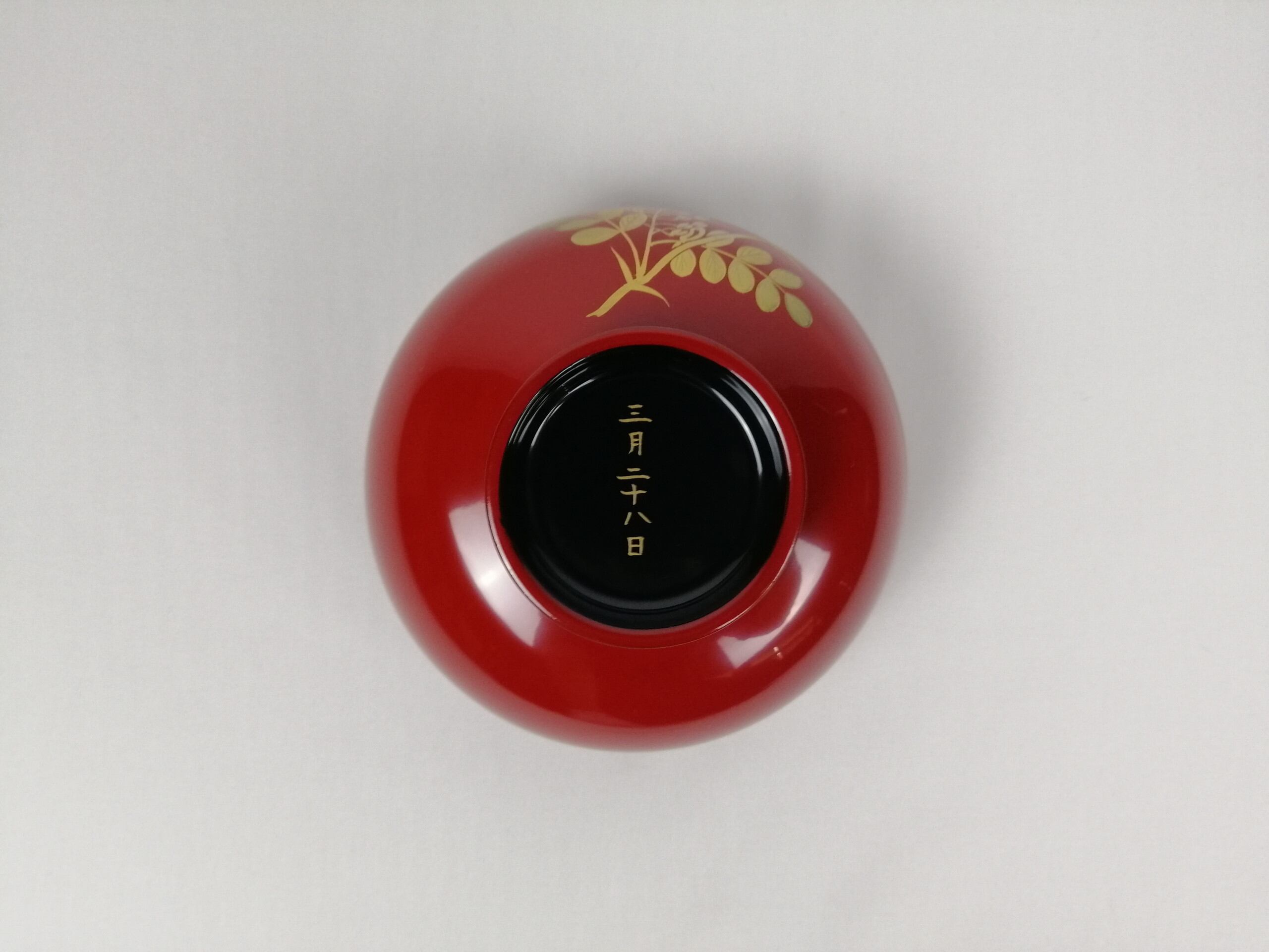 本商品は本金・本漆を使用しており、底面には「三月二十八日花」の文字を絵付けいたします。