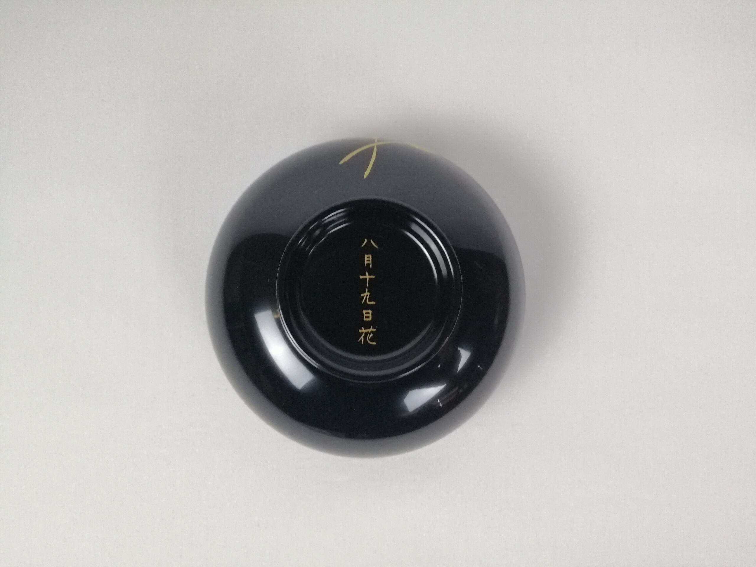 本商品は本金・本漆を使用しており、底面には「八月十九日花」の文字を絵付けいたします。