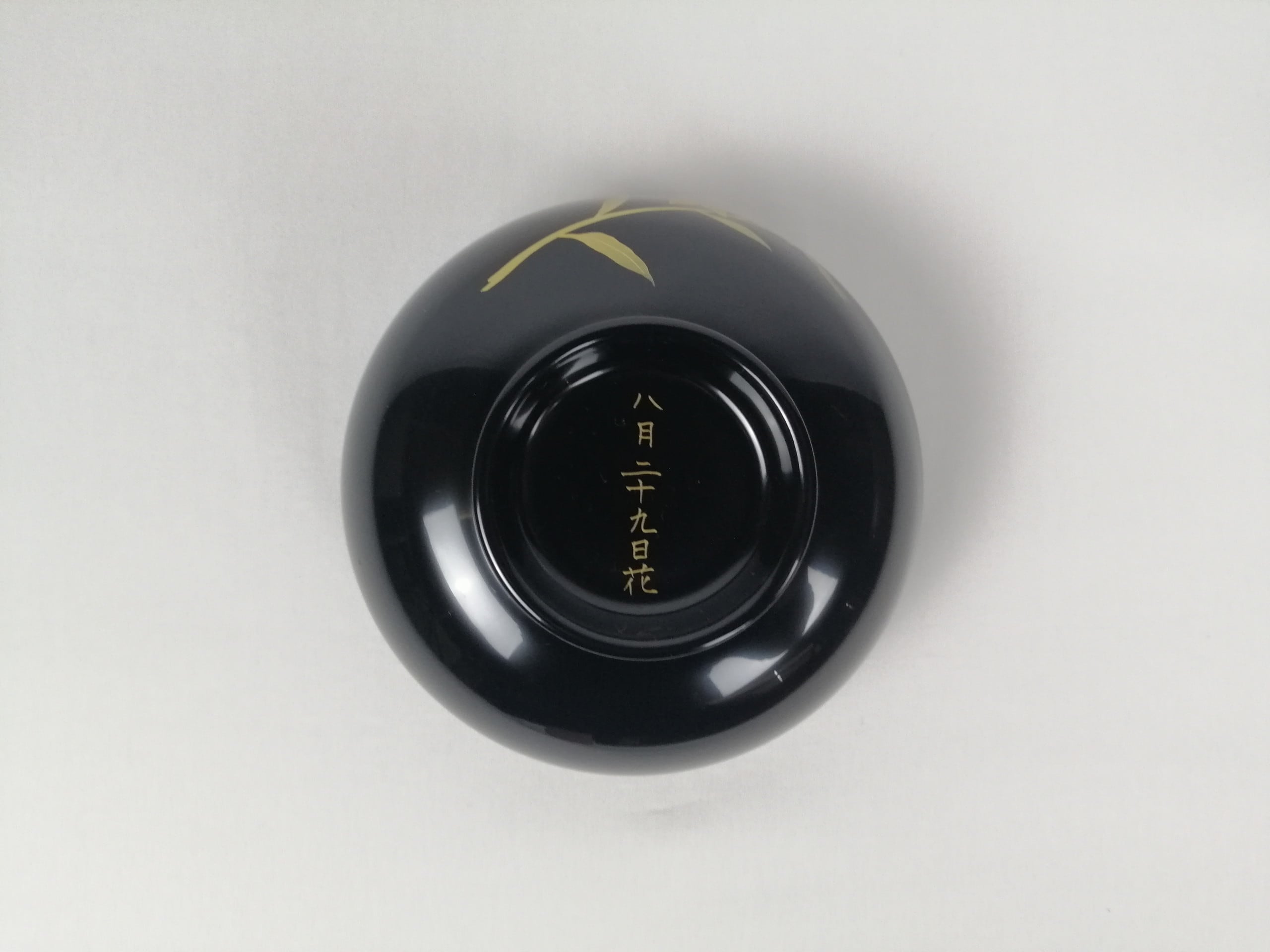 本商品は本金・本漆を使用しており、底面には「八月二十九日花」の文字を絵付けいたします。