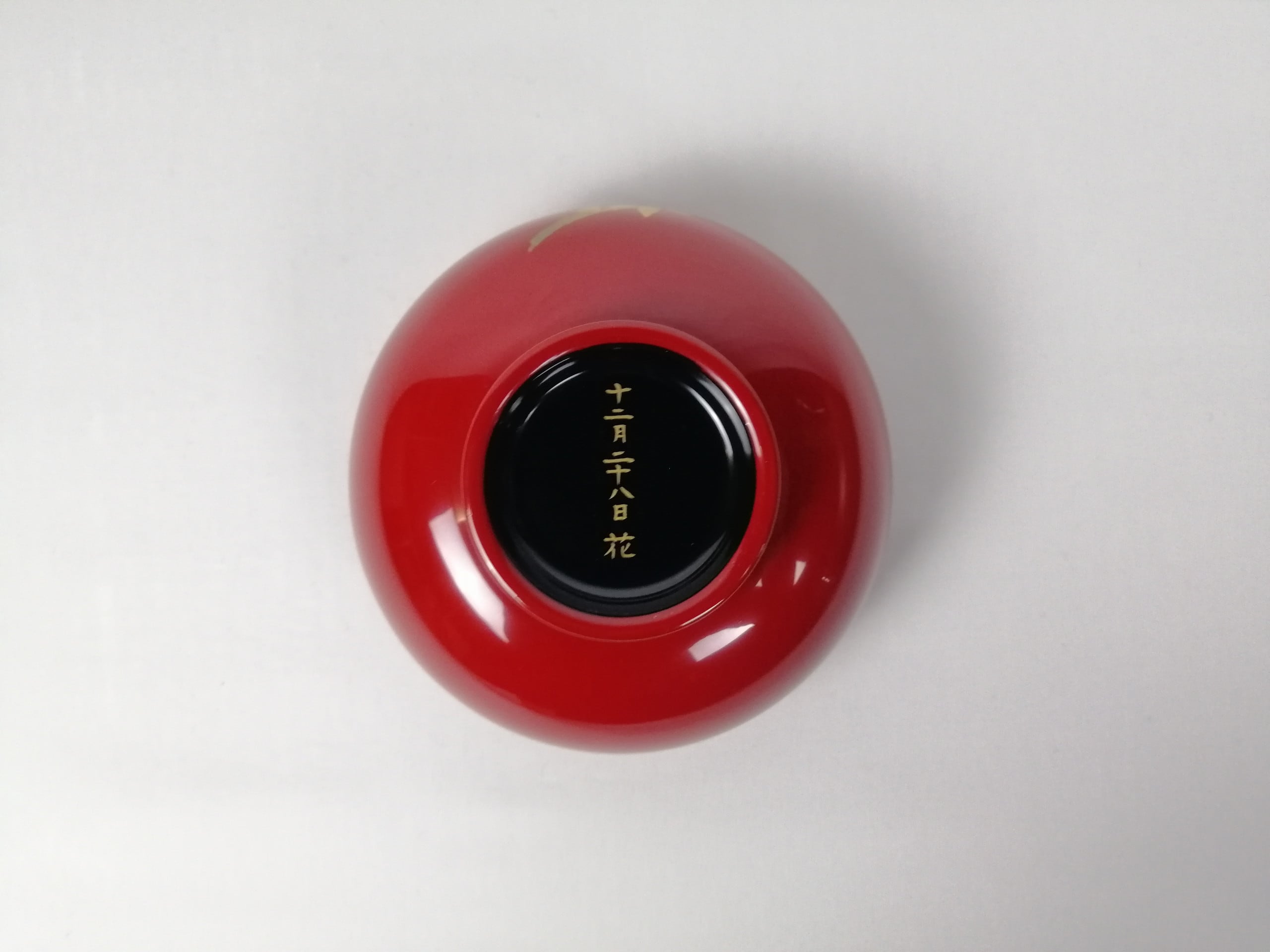 本商品は本金・本漆を使用しており、底面には「十二月二十八日花」の文字を絵付けいたします。